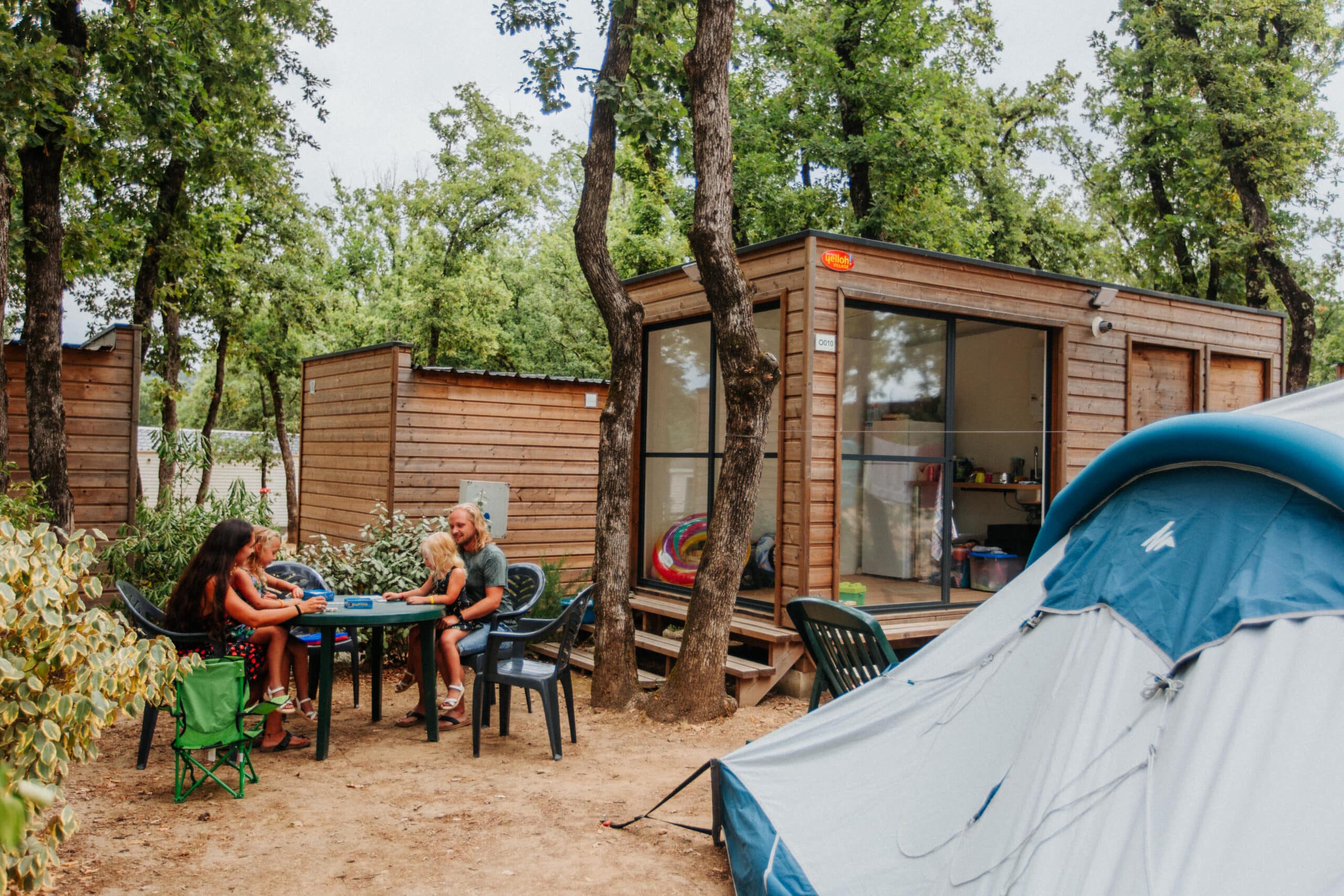 Notre camping à proximité de Vallon Pont d’Arc propose aussi des sanitaires pour les campeurs traditionnels en emplacements nus, location de planchas électriques ou encore un espace restauration avec bar et snack.